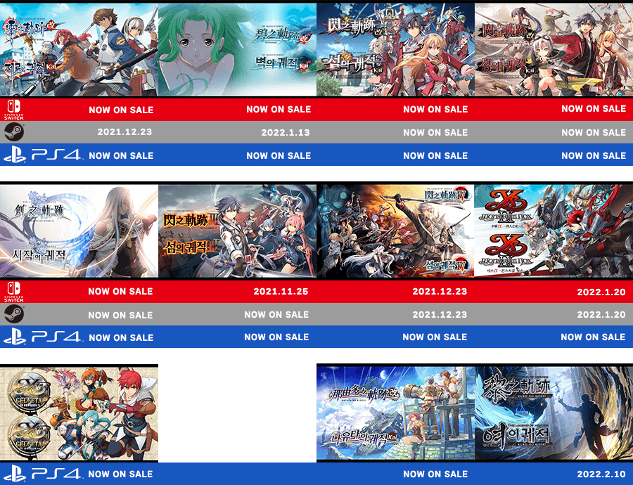 - 「英雄伝説 碧の軌跡:改」2022年1月13日(繁体字/ハングル語)