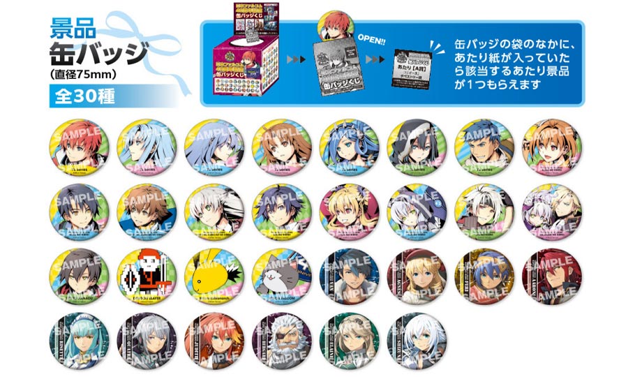 缶バッジの袋の中に、「あたり」の紙が入っていたら該当する下記あたり景品が1つもらえます。