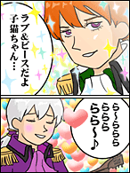 【スタッフのコメント】大好きなオリビエづくし!これはぜひいかに描かせてくださいと立候補して描かせていただきました。最初自分なりに描いたものは、色気もなんもない2頭身オリビエ。他のスタッフにどう?と提出しに行ったら、たくさんの絵的ダメだしがでたので何度か描き直しました。人生初の流し目や、背景などがんばって描きました♪面白いネタなので描くのも楽しかったです♪