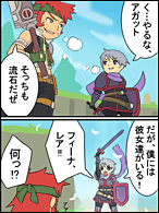 【スタッフのコメント】この作品の前にお送りいただいた作品もとても面白かったですが、こちらの作品を4コマにおこさせていただきました。いつもアドルを応援してくれるフィーナ&レアでしたが、まさかのオチで笑ってしまいましたw