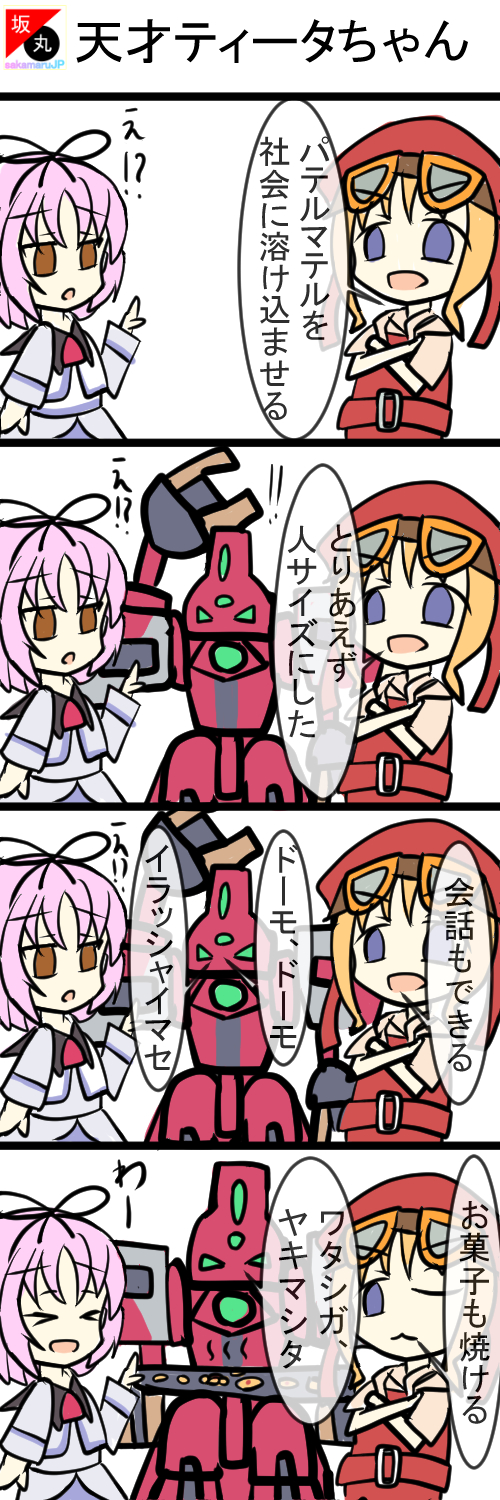パテルマテルを社会に溶け込ませると意気込むティータ、2~4コマ目の完全に順応しているパテルマテルに笑いました!人サイズ、かわいすぎる。レンは受け入れられずにいますね(笑)とてもテンポがよかったです!