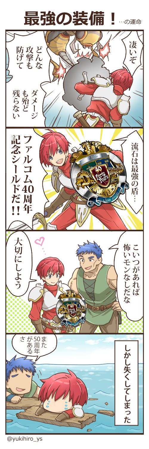 40周年記念ロゴがシールドに!?という驚きと、いったいどんな結末になるのだろうという期待感…。4コマ目で、そうだった~!と笑ってしまいました。イースってそうだよね。しっかりイースシリーズのお決まりパターンでしめくくってくれてありがとうございます(笑)ぜひ50周年も最強の装備を手に入れてほしいです!
